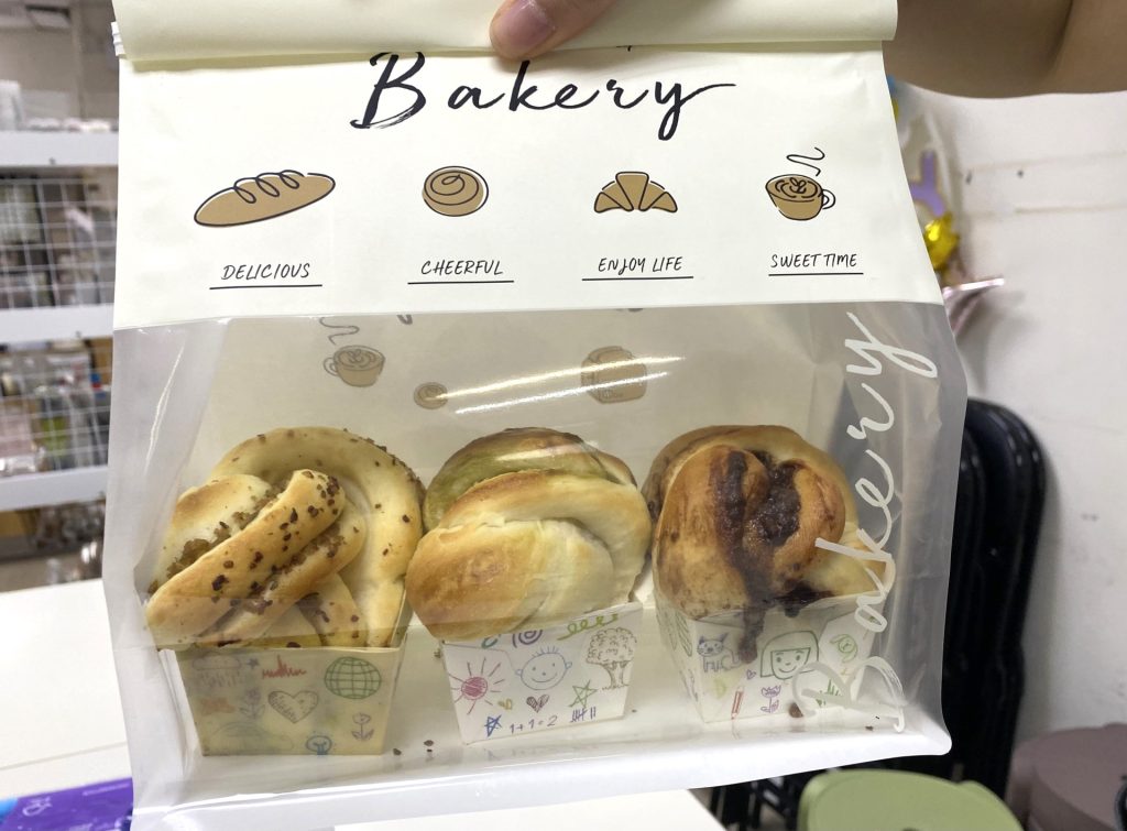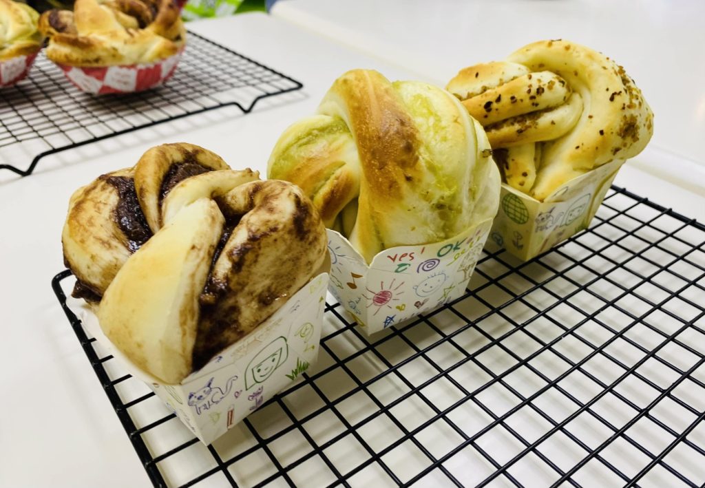 課程大約需時3小時 ( 第1次/第2次發酵時需等待30 / 45分鐘 ), 完成後有4個麵包 連包裝袋