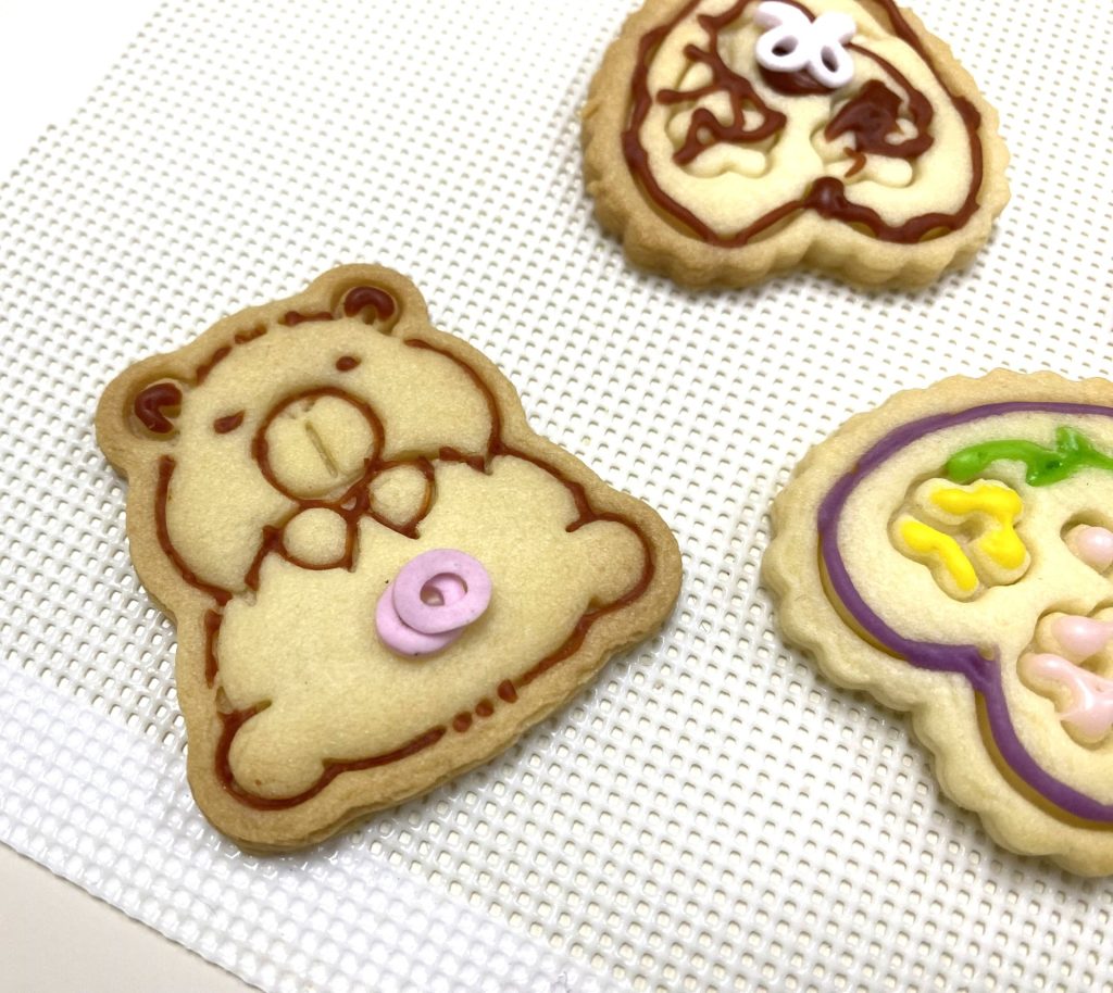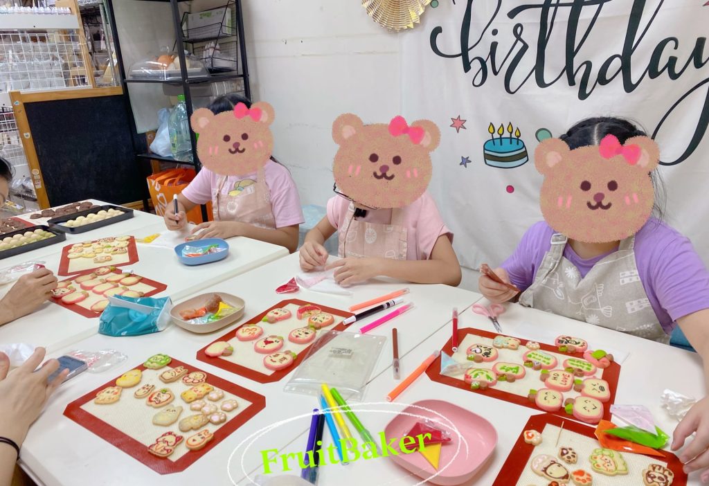 曲奇表面 : 用糖霜/食用色素畫上不同表情/圖案/字 (英國Squires Kitchen Royal Icing 作糖霜)